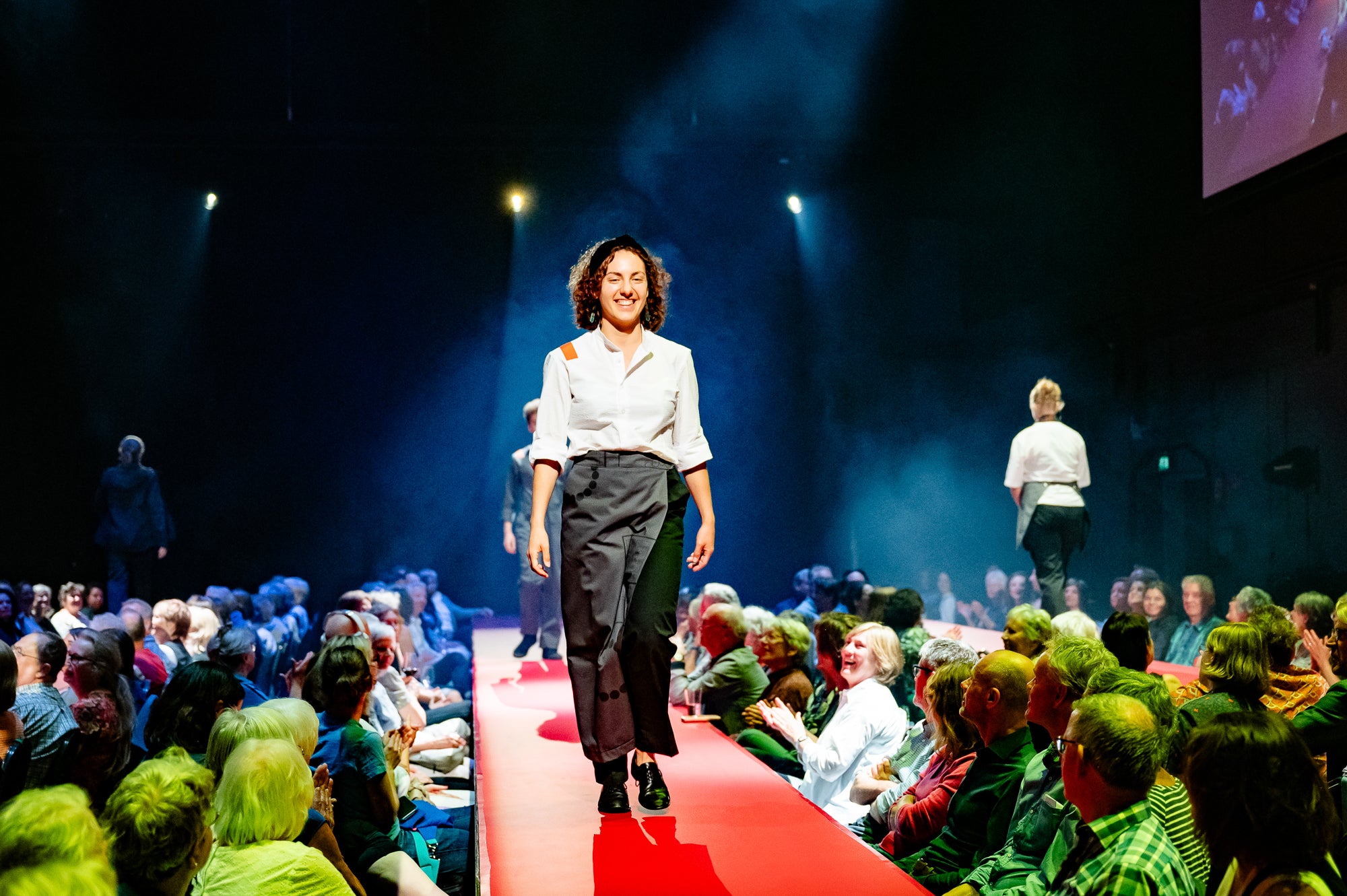Stadsschouwburg Utrecht zocht een duurzame partner om een eigen(tijdse) kledinglijn te ontwikkelen voor alle operationele afdelingen: front office, onderhoud, theatertechniek en horeca. ByRockland pitchte mee met meerdere Nederlandse ontwerpers voor de opdracht. Samen met Saskia Markx creëerde ze een onderscheidende kledinglijn die we momenteel met veel plezier (uit)dragen. Ook produceerde ze met Saskia broches, tasjes, sjawls en zelfs sokken van onze oude bedrijfskleding. Medewerkers kiezen en combineren uit verschillende items, en van verschillende afdelingen, hun kleding per dag of periode.